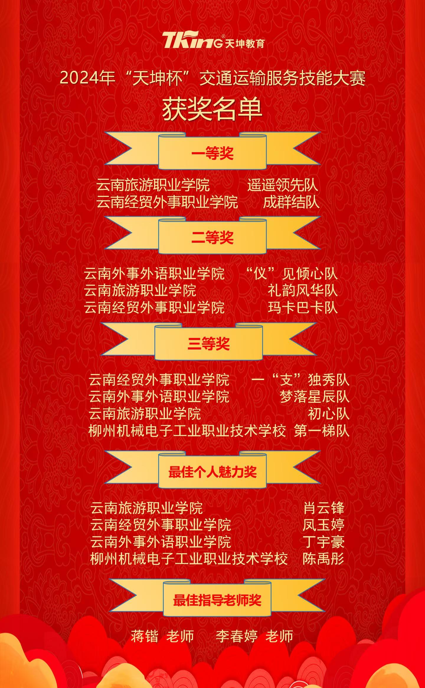 此外,大赛还为云南旅游校区的蒋锴老师和云南经贸校区的李春婷老师颁发了最佳指导老师奖,以表彰在指导学生参赛过程中作出杰出贡献的老师们。