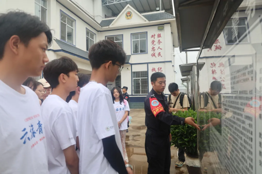 2024年7月15日实践团来到了陇川县广宋警卫室,戍边民警介绍了广宋警务室的基本情况和他们在打击违法犯罪、服务地方发展、维护口岸边境安全稳定等方面发挥的积极作用,并带领实践团成员参观了无人机飞行基地,与实践团成员同走边境路。实践队员们在活动中感受到了戍边民警工作的艰辛与不易,认识到了是他们用青春、坚持、责任、担当在边境筑起了一座坚不可摧的战斗堡垒,用实际回应群众的殷切期盼。
