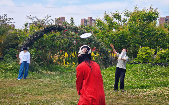 就餐时分,花香、饭香融为一体。席间,教师们围绕教学改革、学生培养等话题展开讨论,资深教授与青年教师畅谈经验,工会主席听取教职工对学院发展的建议,现场氛围轻松融洽。艺术学院教师还结合生态园景观即兴分享艺术创作心得,为活动增添文化韵味。
