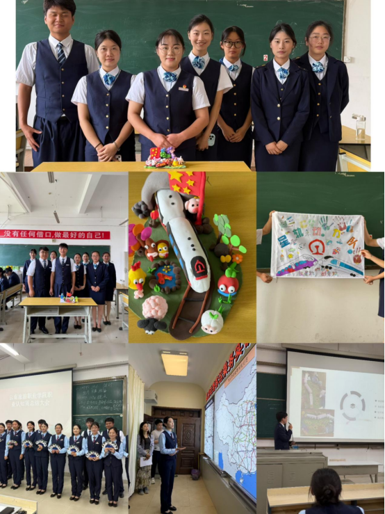 校企合作环节中,高铁实训舱内的情景教学成为亮点。来自昆明局集团的资深乘务长现场演示服务礼仪规范,从标准微笑训练到应急处置流程,学生们分组模拟车厢服务场景,在“实战”中体会高铁服务的精细化要求。“原来一个手势、一个眼神都承载着职业形象,这次体验让我真正理解了‘细节决定品质’的含义。”高铁2402班学生李浩然感慨道。