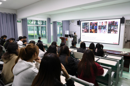 讲座特别设置了“佳能设备实操体验”环节,同学们在专业摄影师指导下,亲身体验佳能单反及专微相机的操作逻辑,通过现场构图练习与参数调试,直观感受不同设备的性能差异。互动问答环节中,学生就“如何平衡商业需求与艺术表达”“新手摄影师如何突破创作瓶颈”等问题积极提问,张迪结合行业经验逐一解答,现场交流氛围热烈。