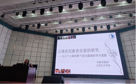云南艺术学院音乐学院硕士生导师苏毅苗教授则以《云南民族音乐前沿研究》为题,通过田野调查案例解析民族声乐的情感表达与文化符号。其现场示范的彝族"西玛朗" 唱腔与葫芦丝即兴创作,引发学生对民族音乐传承的深入思考,讲座中关于越南倮倮人与中国彝族文化纽带的学术探讨,拓宽了学生的文化视野。