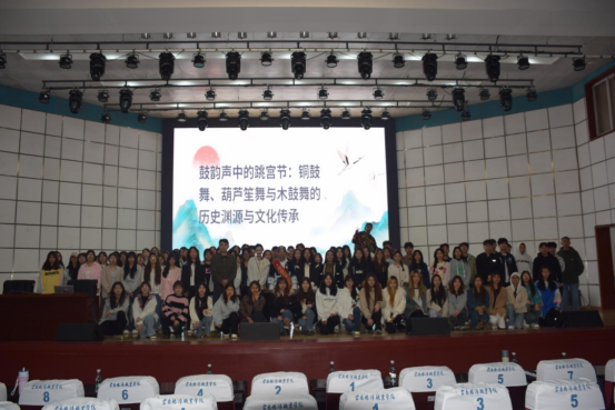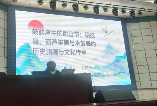 实习期间,学院特邀云南省级非物质文化遗产项目"跳宫节" 代表性传承人罗伟云开展《鼓韵声中的跳宫节》专题讲座。罗伟云以彝族白倮支系铜鼓舞、葫芦笙舞、木鼓舞为切入点,从历史渊源、文化内涵与传承意义三个维度,结合实物展示与现场演示,带领学生解码非遗文化的精神内核。