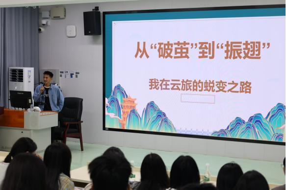 云南艺术学院音乐学专业白金阳(音教2101班)则用"三下乡实践日志""职业技能大赛备赛手账"等实物展示,串联起从云旅青涩学子到云艺自信本科生的蜕变轨迹,其"早八晚十"的备赛日常引发阵阵掌声。