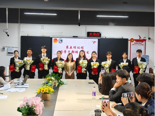 选举结束后,党支部副书记刘瑞琴为上一届优秀团学干部颁发聘书,表彰他们在品牌活动打造、学生服务保障等方面的突出贡献。"接过聘书不仅是一份荣誉,更是一份沉甸甸的责任。"刘瑞琴寄语新一届干部,希望他们以"服务同学、助力学院"为宗旨,在传承中创新,在担当中成长。