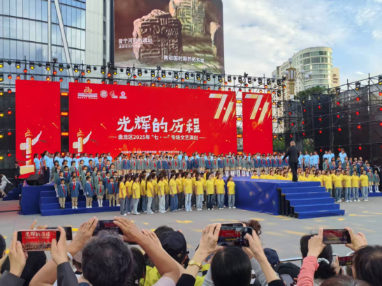 7月1日,为热烈庆祝中国共产党成立104周年,“光辉的历程”盘龙区2025年“七一”专场文艺演出在东风广场隆重举行。文化艺术学院以主题团日活动为载体,组织202名师生组成合唱团登台献艺,用歌声传递爱党爱国情怀,既为这场群众性文化盛宴注入青春活力,也成为院校助力地方社会服务、深化党团建设的生动实践。