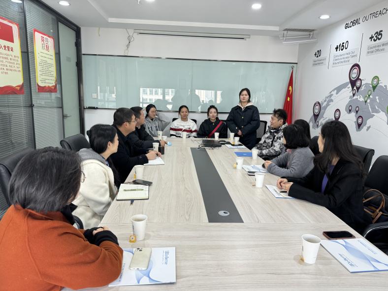 11月30日下午,天坤递云教育科技有限公司总经理余立鹏和副总经理许艳带老师们参观了公司的各业务板块内容,对公司的整体架构、专业群建设、产教融合成果以及教育信息化产品建设有了更深入的了解。负责就业的陈三华老师对21届、22届已毕业在武汉工作的学生及21级实习学生的工作情况、工资薪酬及对工作的满意度等进行了汇报。同时汇报了明年的实习计划及安排。会上双方还就将来的合作方向进行了深入的讨论,校企双方未来将继续以“高速铁路客运服务”人才培养为主体,将应用型办学落到实处,持续凝聚共识,深化产教融合,共同培养应用型高素质人才,促进校企合作结出累累硕果。