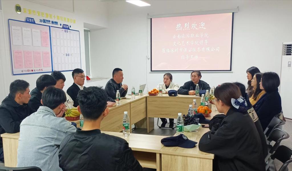 深圳市保安服务有限公司负责人姚文军在深圳地铁14号线基地热情接待学院老师一行,校企双方就目前在岗实习学生晋升通道、实习安全问题、产教融合等事宜进行深入交流,并举行了“校企合作交通运输类专业实习实训基地”授牌仪式。
