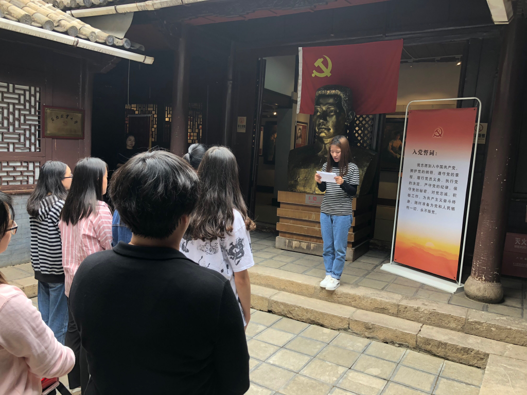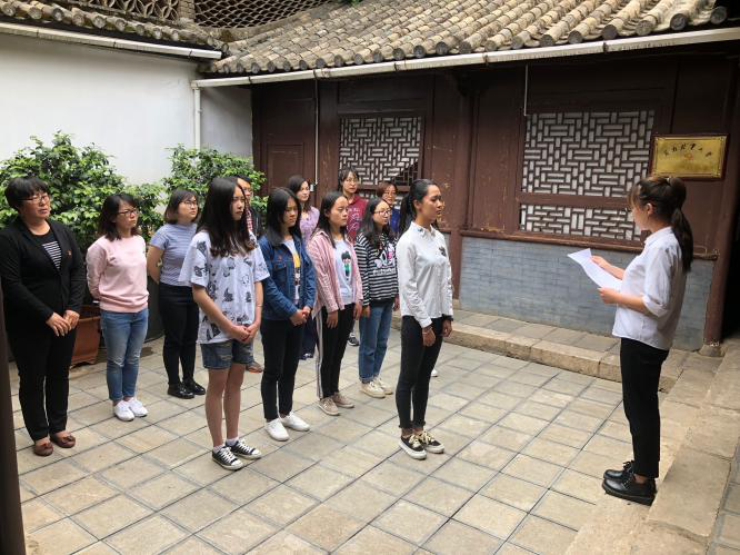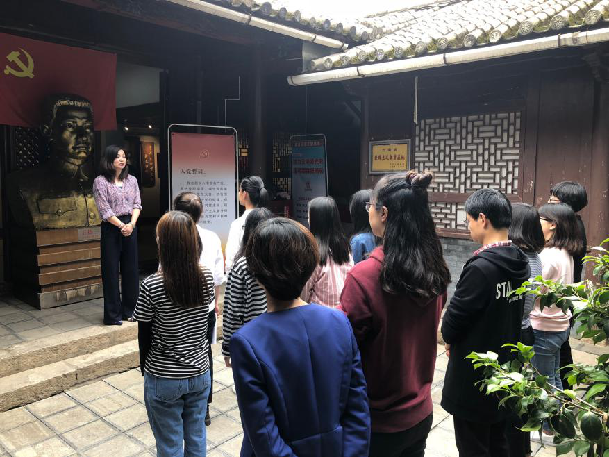2018年5月4日正值“五四”活动99周年纪念及马克思诞辰200周年,在这样一个特殊的日子里,bevictor伟德国际1946官网外语学院党总支学生党支部以“回顾历史,不忘初心”为主题,以提升学生党员理想信念,加强学生党员党性修养,培养学生党员责任意识为目的,在一个具有历史意义的地点——中共云南地下党建党旧址,为李思雨、游冬婕2名同志举行了预备党员入党宣誓仪式,通过仪式教育号召学生党员践行入党誓词。外语学院党总支书记符敏、外语学院院长伍乐平、外语学院党总支副书记方莉及部分教师党员、入党积极分子参加了此次宣誓仪式。仪式由外语学院学生党支部组织委员蒋晓燕同志主持。