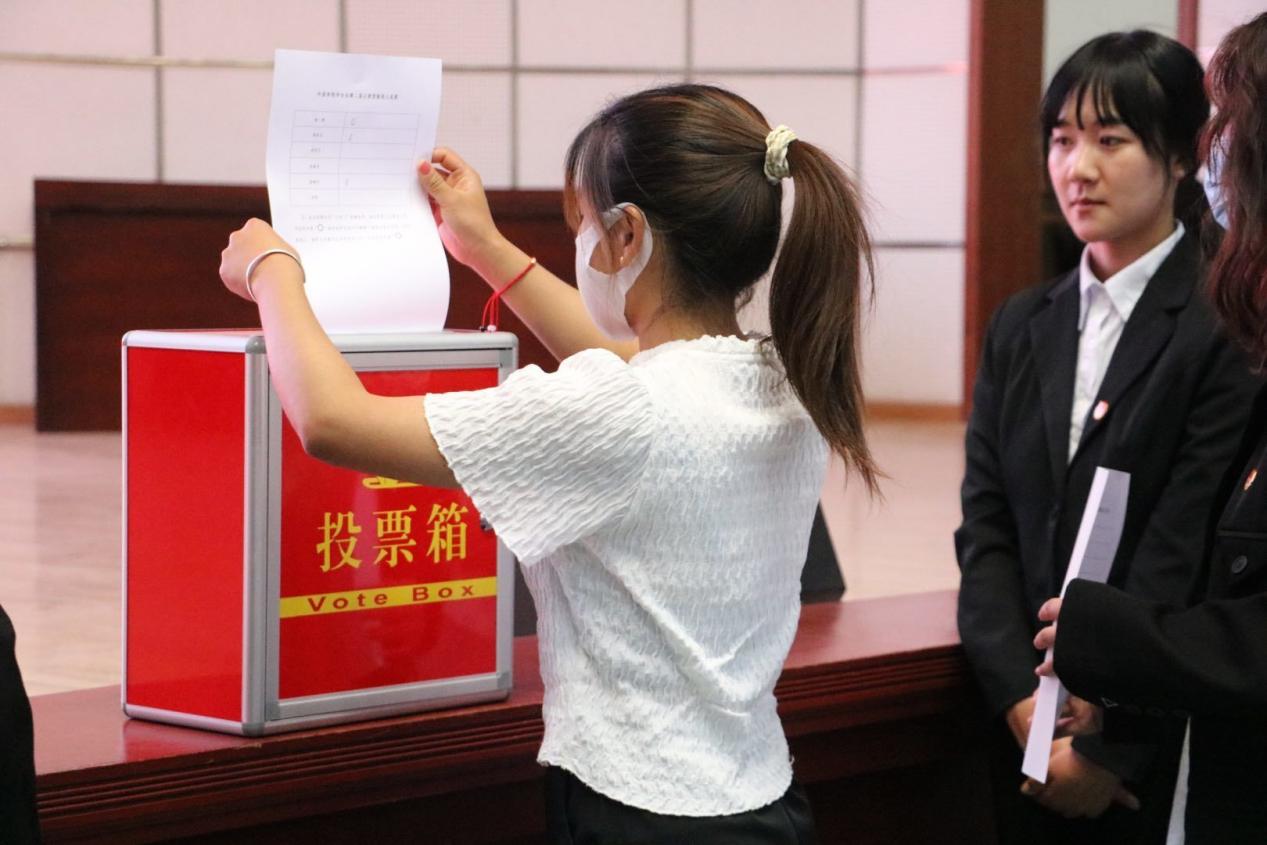 接下来是投票选举新一届学生会主席团成员环节,大会秉着公平、公正、公开的原则进行投票选举,由杨艳萍、赵巧、李雄燕、赵清清、王娟娟、方智慧同学担任监票人,由杨兴丽、张演同学担任计票人。