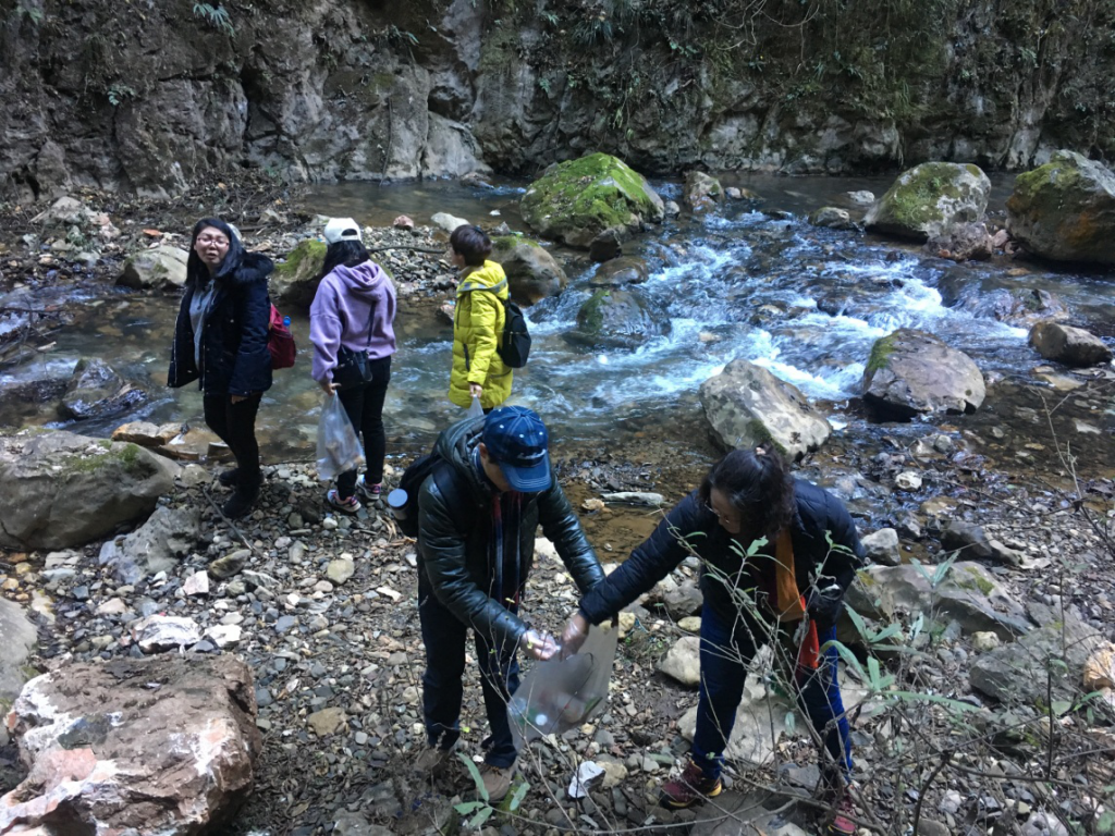 在雨碌大地缝、娜姑镇白雾村,外语学院党总支党员及入党积极分子对景区内公示语汉英翻译进行了调研,为景区文化品质的提升、语言环境的净化提供了帮助。同时在景区内进行“环保游” 捡拾垃圾活动,还景区一片洁净。
