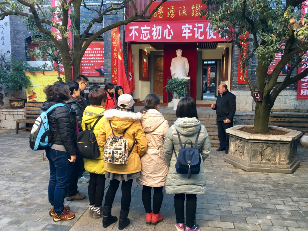 为激励外语学院党总支全体党员继承和发扬党的优良传统和作风,不忘初心、牢记使命、 团结一心、砥砺奋进,增强我总支的凝聚力、战斗力和号召力,同时结合我学院旅游外语教育的工作实际,扎实为会泽县旅游发展做点实事,我总支于2018年1月6-7日组织全体党员及入党积极分子到曲靖会泽县雨碌大地缝、娜姑镇白雾村以及水城红军扩军旧址爱国主义教育基地等地进行参观学习活动。