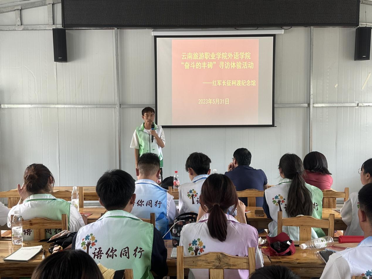 弘扬百年奋斗精神,走好新时代长征路。为深入学习宣传贯彻党的二十大精神,引导团员青年从党的百年奋斗历程中汲取前进力量,进一步落实学习革命文化和红色精神,坚定理想信念,2023年5月31日,外语学院前往寻甸红军长征柯渡纪念馆开展“奋斗的丰碑”寻访体验活动。红军长征柯渡纪念馆,位于云南省昆明市寻甸县柯渡镇丹桂村,是社会科学类历史专题纪念馆,也是云南省爱国主义教育基地。外语学院党支部书记陈奇、党支部副书记方莉、团总支书记张梦以及29名团学干部参加本次活动。