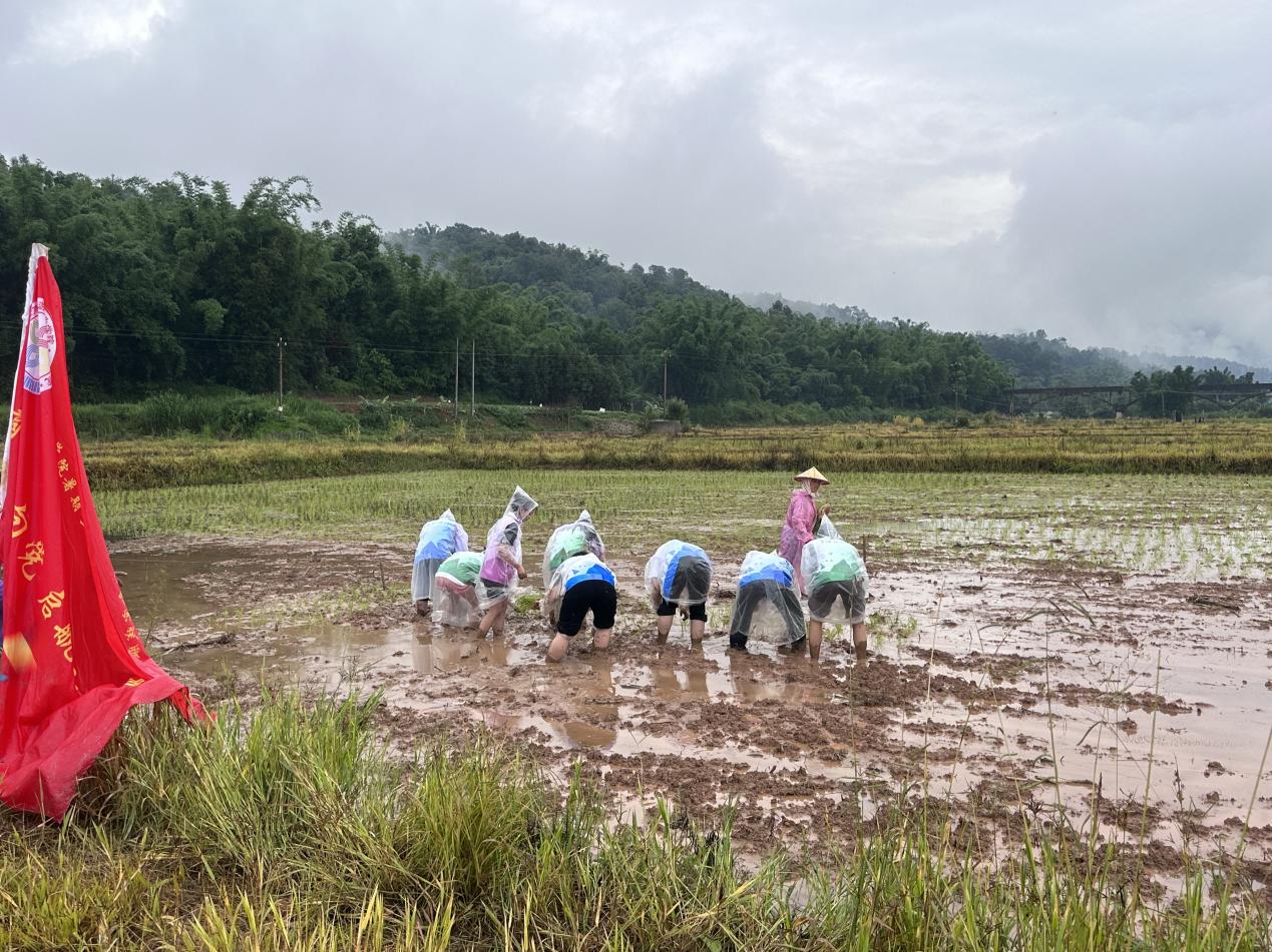 七月正值德宏雨季,同学们冒着绵绵细雨沉浸式地体验插秧活动,第一次插秧让同学们显得有些手足无措。在培训老师的讲解下,同学们快速掌握了插秧的要领、秧苗的间距等问题。充沛的雨水让田里的泥土更加厚重,光脚踏入泥中使得每一步移动都很艰难,稍有不慎就会在泥田里摔跤,同学们互相帮助,汗水早已被雨水冲刷,看着自己亲手插的秧苗被风拂过,同学们都成就满满,同时对农民伯伯的不易和“谁知盘中餐,粒粒皆辛苦”有了更直观深入的了解。