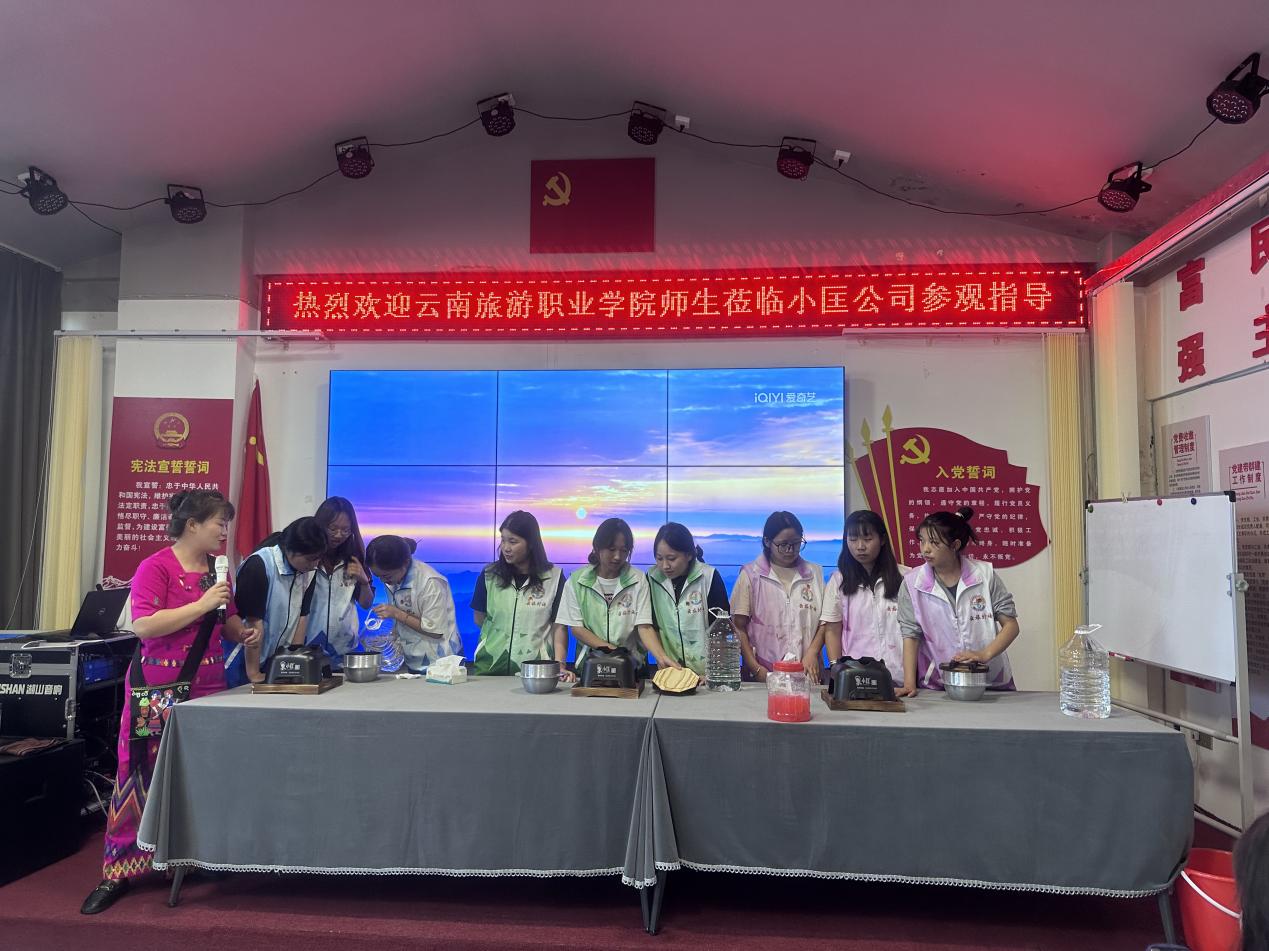 在德凤茶厂,同学们深入普洱茶档案馆,在解说员的介绍下,对普洱茶制作、历史和功效有了更深入的了解。除普洱茶外,德昂酸茶也正在一步步走出德宏,走向全国,迈向世界,同学们观看了茶艺师盖碗冲泡德昂酸茶,芳香扑鼻,再品德昂酸茶,味道浓郁,仿佛品到了一种民族文化的传承。