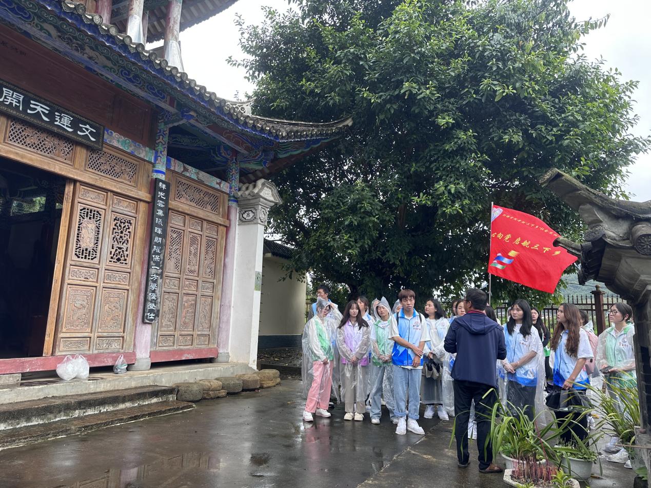 团队在勐戛镇穿梭,历经两个多小时的徒步,重走红色足迹、追溯红色历史。在魁星阁,见证了中国古代传统建筑的精美我们怎能不去誓死守护;在抗日忠烈祠,看着杨思敬烈士让石匠凿的“还我河山”四个大字,仿佛浮现出无数优秀中华儿女抵御外来侵略、义无反顾共赴国难,抛头颅、洒热血的场景;在番家大院和李家大院,大家与大院后人抚今追昔,共同回望一段岁月,至今依然刻骨铭心,而一种精神,却始终贯穿历史,永远辉映未来。