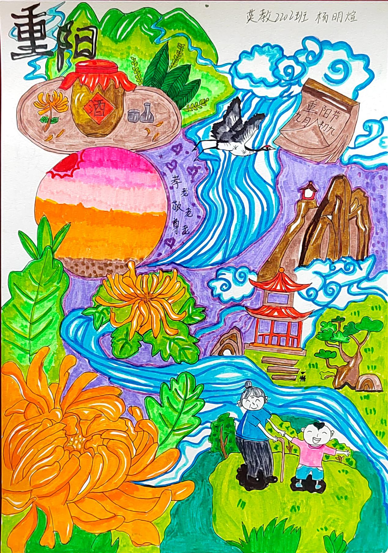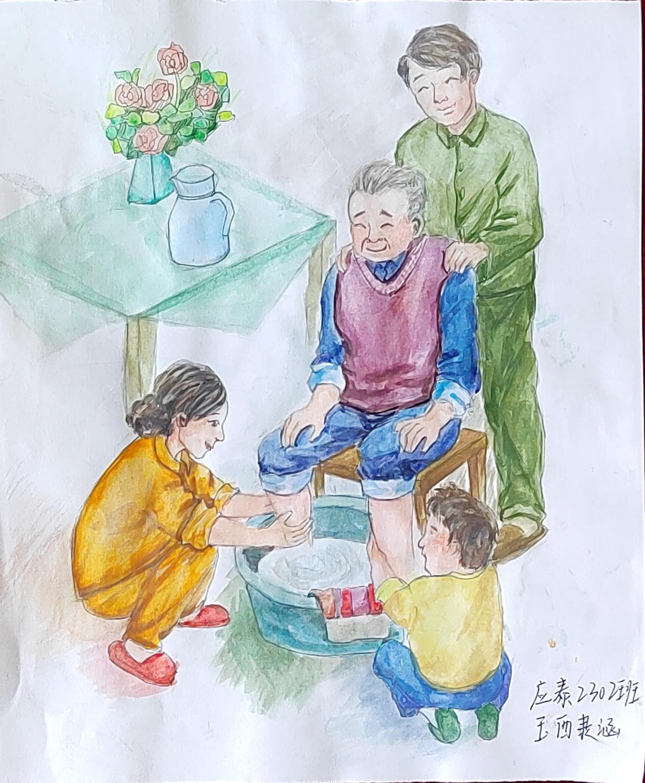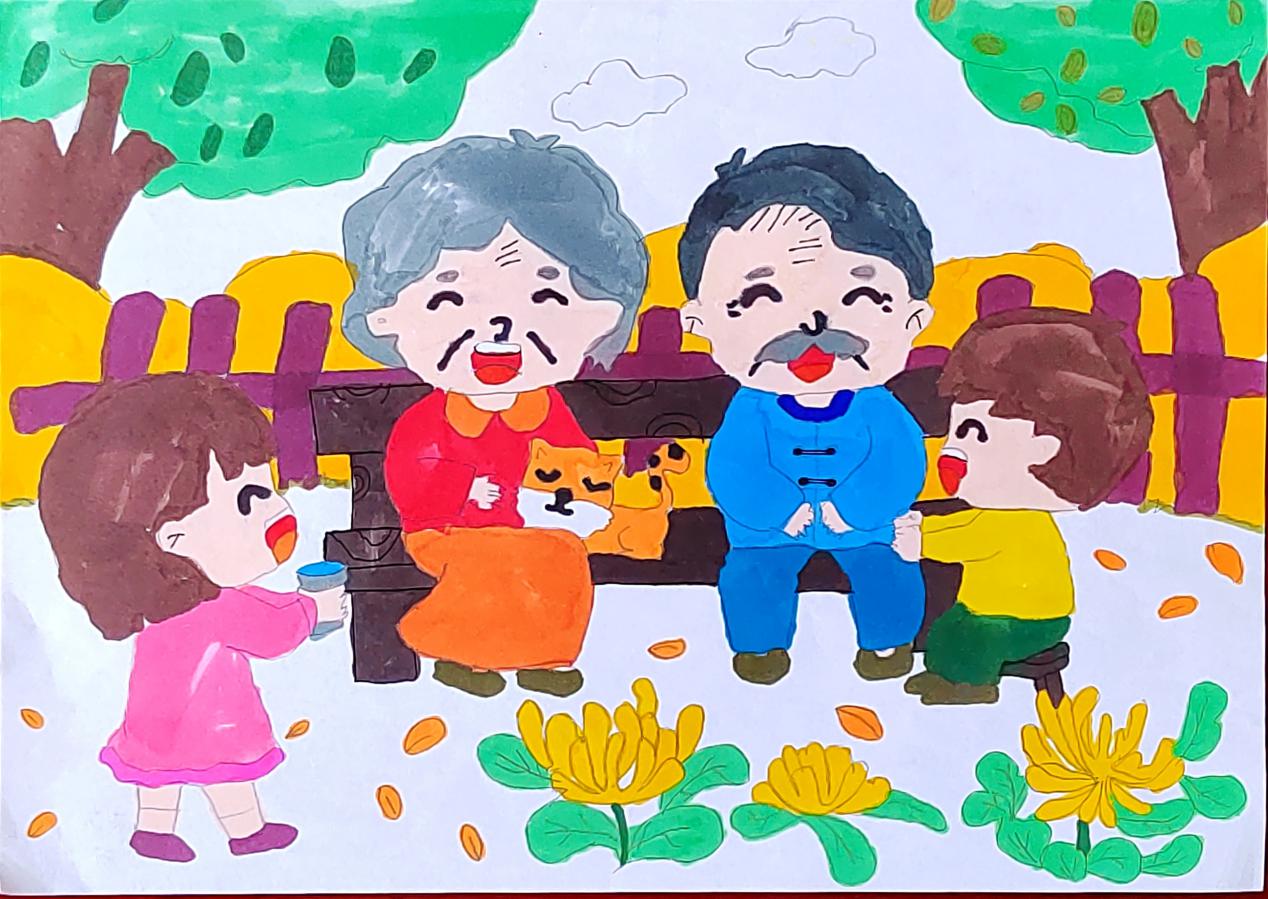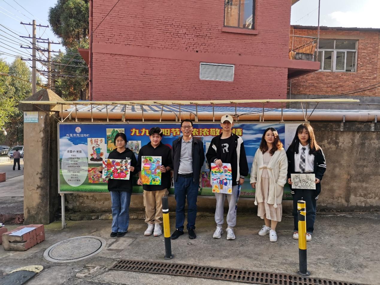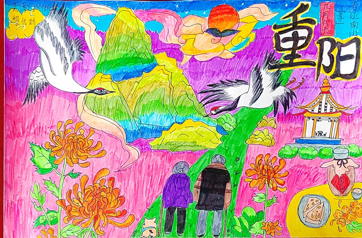 金秋送爽,丹桂飘香,重阳又至,问候送上。今年10月是全国第14个全国“敬老月”,10月23日(重阳节)是全国第11个法定“老年节”。在这秋风送爽,十里飘香的季节,我们迎来了重阳佳节。今年也是伟大领袖毛主席诞辰130周年。毛泽东同志是伟大的马克思主义者,伟大的无产阶级革命家、战略家、理论家,是领导中国人民彻底改变自己命运和国家面貌的一代伟人。为深入贯彻落实党的二十大精神和习近平总书记关于老龄工作重要指示精神,弘扬中华民族孝老爱亲传统美德,营造养老孝老敬老社会氛围,不断增强广大老年人的获得感、幸福感、安全感,外语学院结合2023年开展青少年“中华魂”(毛泽东伟大精神品格)主题活动,充分发挥“五老”优势,组织开展了“弘扬中华魂感党恩敬老爱老传承未来”主题绘画活动,听“五老”讲历史,和“五老”一起布置宣传栏,以笔为心,以画为言,画出对毛泽东等老一辈无产阶级革命家的无限敬意,写出对老一辈人的感恩和敬意,送出对老教师们深切的祝福。引导青年学生学习毛泽东伟大精神品格,学习老一辈无产阶级革命家为全民族幸福生活奋斗终身的高尚品质和革命精神,弘扬中华民族尊老、爱老、助老、敬老的传统美德。