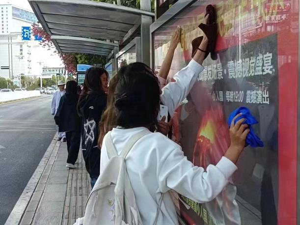 旅英2301班团支部则以“春风十里,不如学雷锋的你——校园里那些温暖的事儿”的主题视频记录了身边的感人的“雷锋精神”,激励同学们学习和贯彻新时代雷锋精神;应日2302班团支部组织开展了无偿献血活动,让爱心传递,为生命接力,让“雷锋精神”熠熠生辉;应泰2301班和英教2303班团支部则以“打扫公园”为主题,通力合作,维护公园的环境卫生,做“雷锋精神”的行动者;应泰2302班团支部组织同学们在闻一多先生殉难处开展缅怀活动,打扫卫生,感悟伟力,振兴中华;英教2301班团支部组织同学们观看电影《离开雷锋的日子》,深入走进雷锋平凡却伟大的精神世界,对乱停乱放在人行道盲道上的共享单车来了一次大清理,依序扶正,确保行人的安全通行;英教2302班团支部组织到图书室打扫卫生、整理书籍,希望能为读者们提供一个更加良好的阅读环境;英教2307班团支部组织同学们擦拭公交车站台宣传栏,他们的举动让等车的乘客们忍不住露出温暖的笑容;英教2310班团支部组织去云南省博物馆参观,帮助游客指路,打扫周边卫生……。