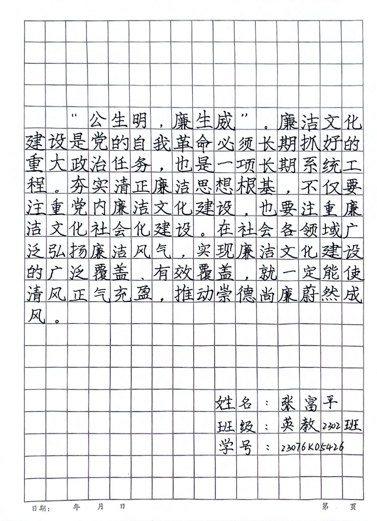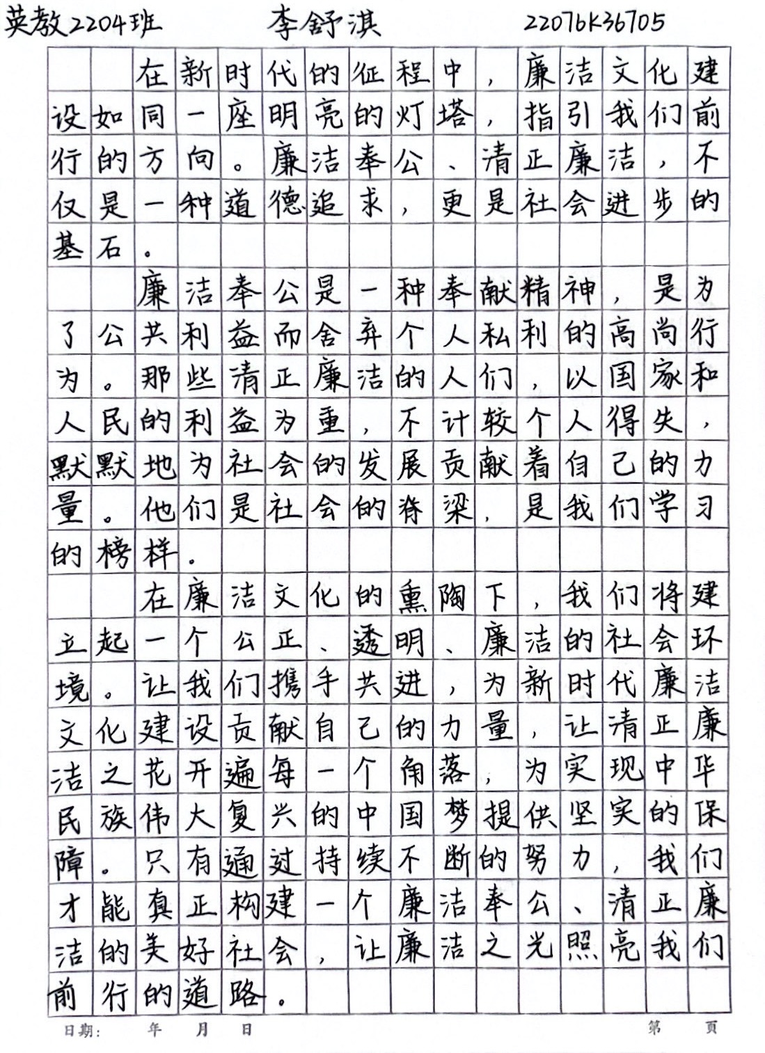 廉者,政之本也。为深入推进“清廉学校”建设,营造校园崇清尚廉氛围,教育引导师生夯实清正廉洁思想根基、厚植廉洁奉公文化基础、培养廉洁自律道德操守,不断增强廉洁治校、廉洁从教、廉洁育人、廉洁修身意识,外语学院近日开展了“墨香传廉德妙笔扬清风”廉洁文化书法比赛。