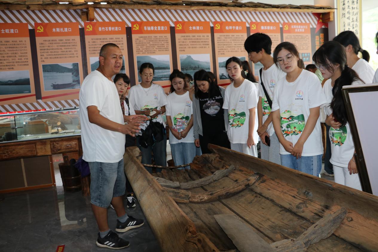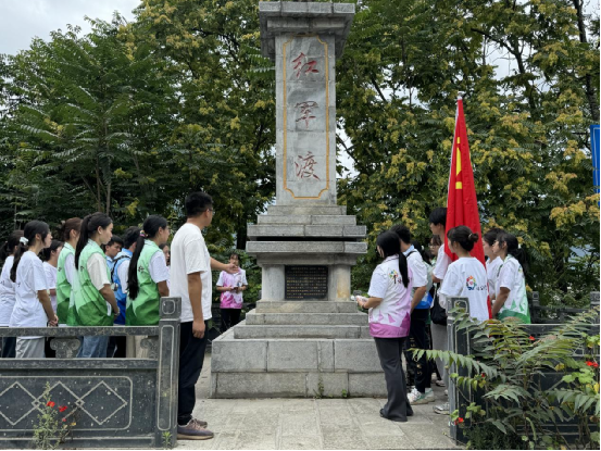 在石乡村渡口和木斯扎渡口,实践团成员们沿着红军当年走过的足迹,仿佛穿越时空,回到了那段烽火连天的岁月。大家驻足凝视着滚滚江水,仿佛眼前看到了当年红军渡江的木船,耳边仿佛回响着红军战士们坚定的步伐和激昂的口号。在这里,实践团成员们用慷慨激昂的话语讲述着红色故事,用实际行动践行“讲红色故事,做时代新人!”的铿锵誓言。