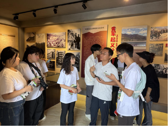 7月15日,实践团一行来到了金江镇人民政府革命老区陈列室。室内陈列着丰富的历史文物和珍贵照片,生动地再现了红军在金江镇的战斗历程和革命精神。在参观过程中,实践团成员表情凝重、认真聆听、感慨万千,这些珍贵的展品让他们更加深刻地理解了革命先烈的英勇无畏和革命精神的伟大。期间,他们还利用专业优势,将红色历史翻译成外语,并进行讲解,为宣传红色文化做力所能及的帮助。