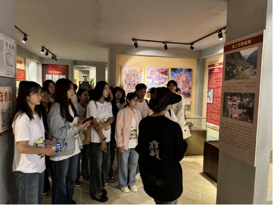在兴隆村红色文化研学教育基地,实践团成员们沉浸式体验了当年红军横渡金沙江留下的时光足迹,在观看了《金江1936》等红色影片后,进一步加深了对革命历史的认识和理解。大家被红色精神所感染,纷纷帮助馆内红色展品进行双语翻译介绍,将自己的专业知识融入到实践中,为红色传承做出努力。