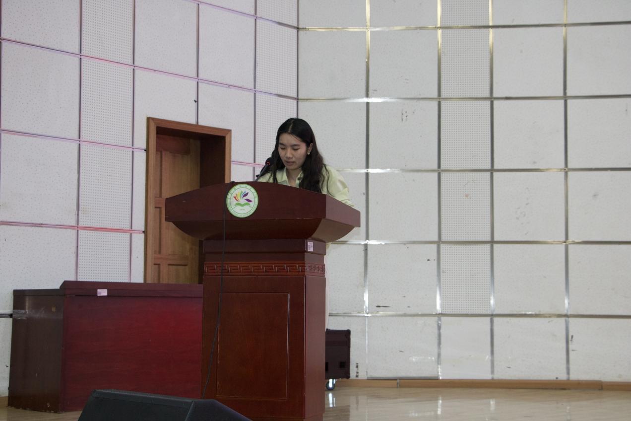 会议期间,各项议程有序推进,校级学生会执行主席唐志薇上台致辞,肯定外语学院学生会工作成效,寄语代表们积极履职、共促发展。外语学院学生会主席团代表安蓉英作年度工作报告,回顾过去一学年举办的多彩校园活动,如体育赛事、志愿服务等,总结活动成果与团队协作经验,强调“融入学院大家庭”的工作初心。实践部、宣传部、办公室等五部门依次上台,围绕部门职能汇报工作亮点、现存问题及未来规划,展现各部门务实进取的工作风貌。