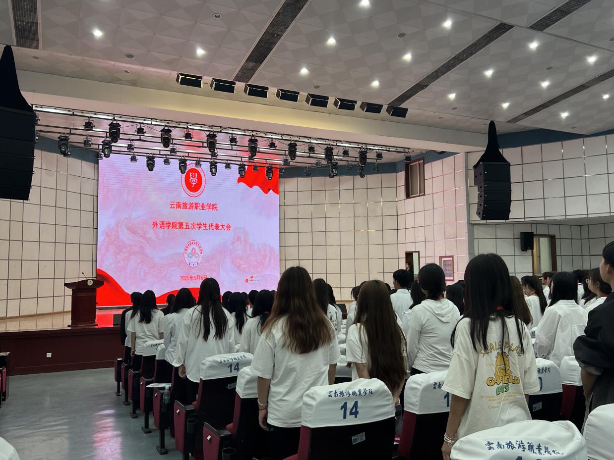 拼搏风采绽芳华,携手同心筑新篇。在蓬勃的五月,为引领广大青年学子勇担使命、砥砺前行,全力凝聚学生组织的创新活力与服务效能,外语学院于5月6日在学校报告厅举行了第五次学生代表大会。外语学院党支部副书记雷蕾、团总支书记张馨元、bevictor伟德国际1946官网校级学生会执行主席唐志薇、各二级学院主席团成员、外语学院学生会全体成员以及176名正式学生代表出席本次会议。会议由主席团成员王鑫月主持。