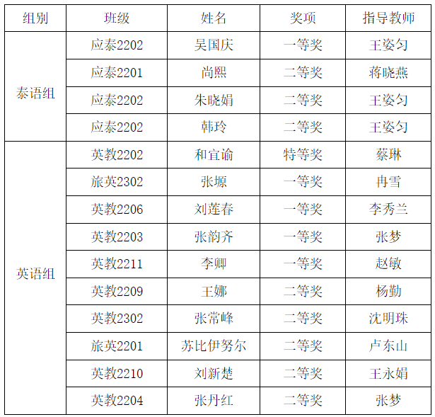 本次比赛分为英语组和泰语组,经前期初赛严格选拔,共14名选手从70余名参与者中脱颖而出,顺利进入决赛。外语学院全体领导出席本次比赛观摩指导,英语教育教研室全体教师、小语种教研室教师担任决赛评委。