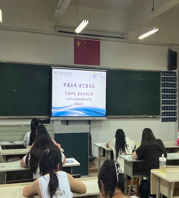 在“一技在手,一生无忧”的职教周主题引领下,应用泰语专业于2025年5月15日至16日成功举办“职通未来,语艺展风采”外文书法与口语比赛活动。本次活动紧密围绕职业教育的核心理念,通过书法与口语竞技,为学生搭建专业技能展示平台,助力学生提升综合素质,传承中华优秀传统文化,彰显职业教育的育人价值。