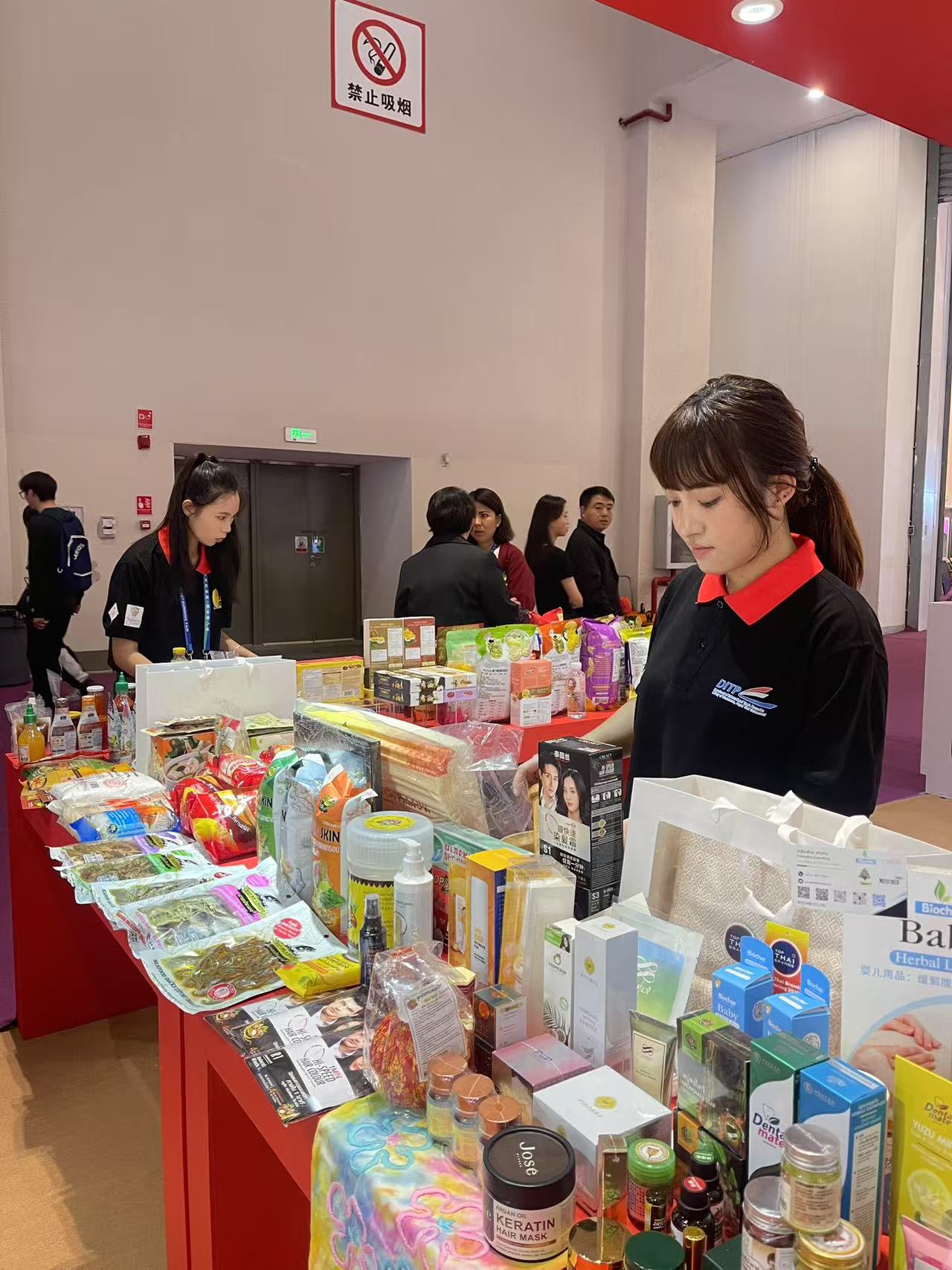 应用泰语专业学生玉尖罕、玉应香则参与到泰国产品的推介协助工作中。在商务洽谈的泰国产品展示区,她们运用所学,热情地为来往的观展商和采购商介绍产品特性、解答疑问并提供展位引导。两名同学表示,此次宝贵的实践经历不仅让自己的专业技能得到了实战检验,更在与各方的互动中极大地拓宽了国际视野,对行业前沿动态有了更为直观和深刻的认识。