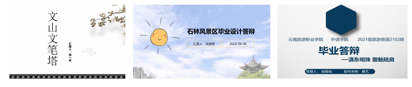 答辩过程中,3名学生毕业设计各具亮点,一致受到教研室教师们好评。段梦婷同学毕业设计作品为“石林风景区”。学生去实地进行了取景拍摄,讲解视频画面优美,语音语调较好,讲解质量高。高一未同学毕业设计作品为“文山文笔塔”。作品选题立意高,文笔塔虽建于偏僻的边疆地区,但体现了当地人们对知识的渴求,对未来美好生活的向往。该作品对传承中华优秀传统文化具有较强的现实意义。保菊凤同学毕业设计作品为“滇东明珠 爨魅陆良”。该作品体现了学生对家乡的热爱,有力传播了家乡特有美食及文化,作品感召力强。