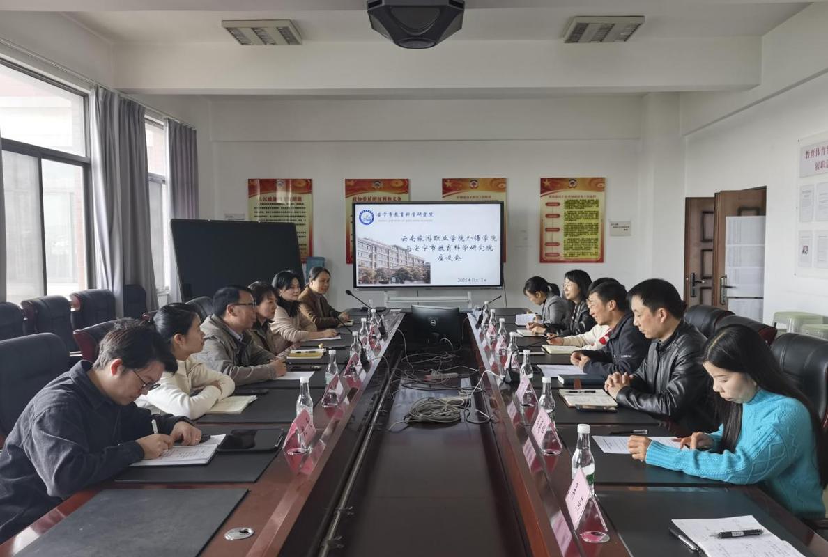 为进一步拓展校外实习实训资源,加强产教深度合作,2025年11月13日,外语学院与安宁市教育科学研究院联合召开专题座谈会,积极响应地方教育发展需求。会上双方围绕“学生实习实训,师资共育发展”等主题,共探高等教育与基础教育衔接新路径。