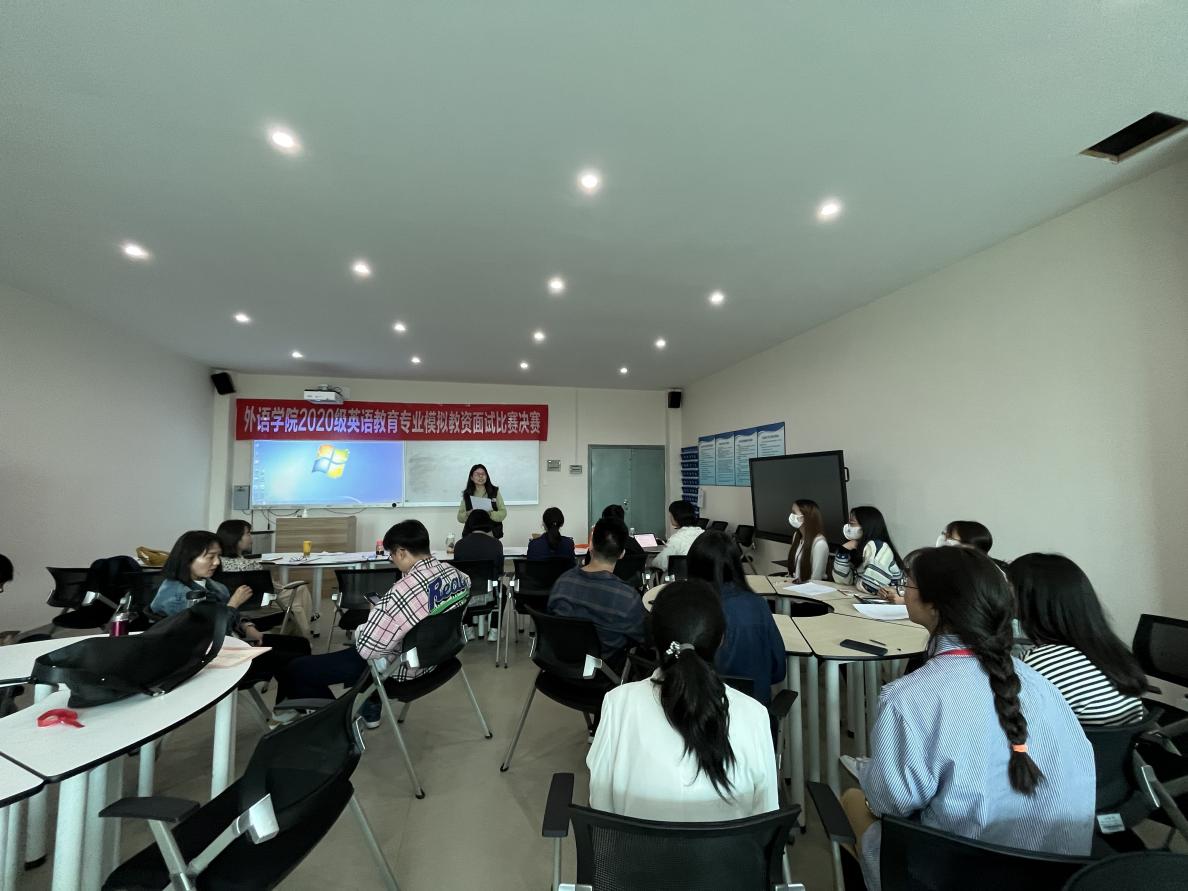 为不断完善外语学院“三全育人”体系,同时帮助伟德小学英语教育专业学生熟悉教师资格证面试的基本流程、提升应试能力,促进伟德小学英语教育专业高质量发展,2022年5月18日下午,外语学院开展了模拟教资面试比赛决赛。本次比赛面向2020级小学英语教育专业全体学生,初赛由各班自行选拔5个优秀讲课视频作品,在小学英语教育教研室全体专业教师的评判下,最终有6名同学脱颖而出,进入院级决赛。小学英语教育教研室主任蔡琳、教研室成员杨黎、杨勤、姜雪梅、沈明珠、赵敏担任决赛评委,外语学院院长李敏、副院长王永娟、企业教师刘丹、刘佳作为嘉宾莅临本次大赛进行观摩指导。