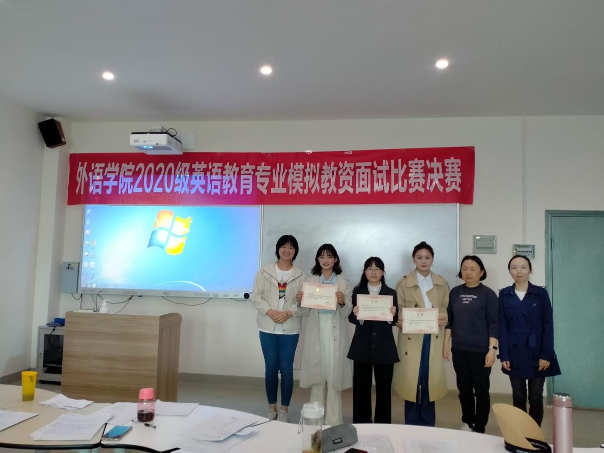 经过紧张激烈的角逐,最终来自英语教育2014班的杨梦楠荣获一等奖,黄自云(英语教育2010班)、罗正芹(英语教育2007班)获得二等奖,廖天凤(英语教育2011班)、习宏欣(英语教育2012班)、郎思璐(英语教育2006班)获得三等奖。最后,在场嘉宾和评委老师为获奖同学颁奖并鼓励她们,愿她们能彼此取长补短,努力提升职业素养,增强面试技能。