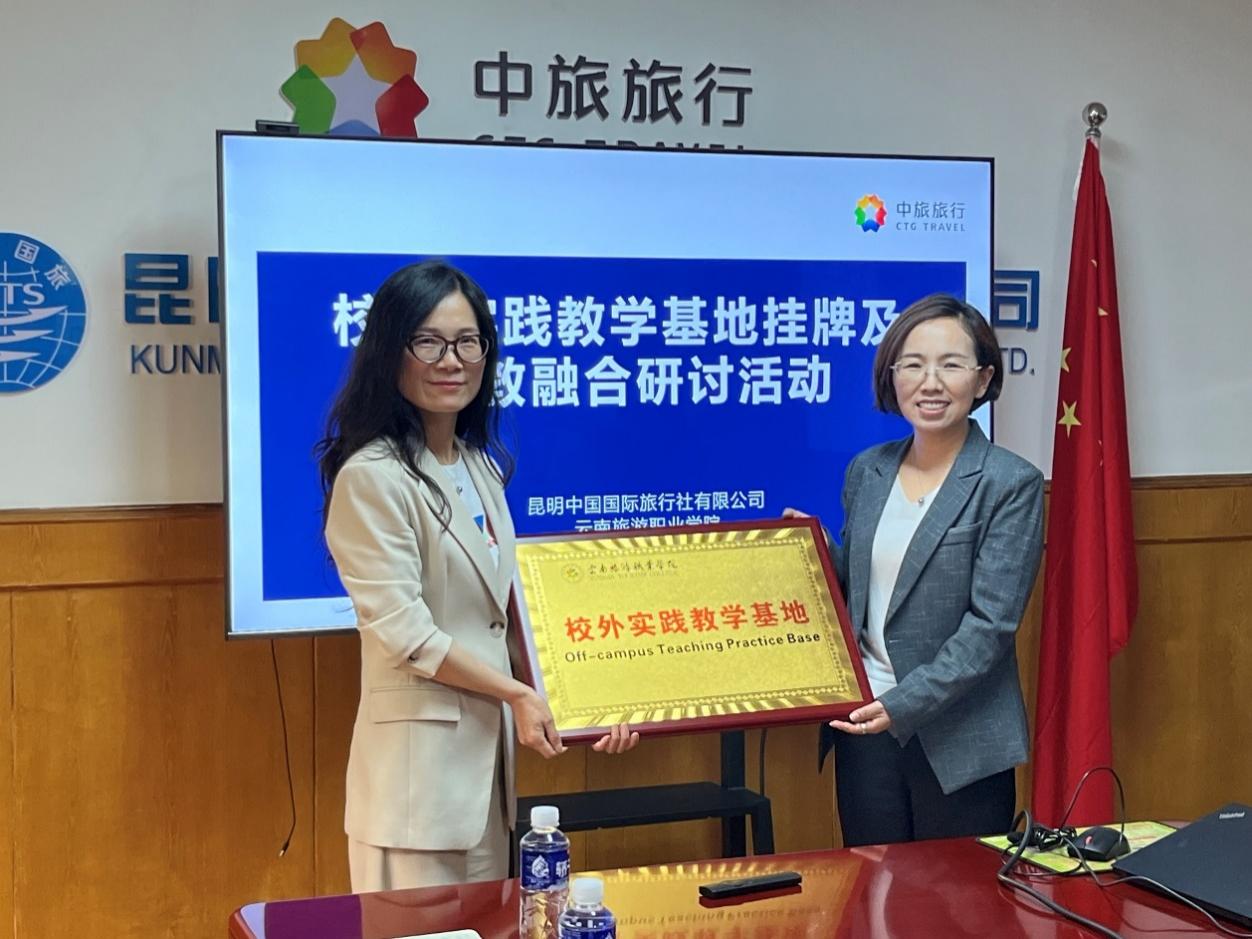4月30日,伟德与昆明中国国际旅行社有限公司(昆明国旅)在其总部共同为校外实践教学基地揭牌。双方围绕产教融合、人才培养等核心议题展开了深入交流,并达成了多项合作共识。
