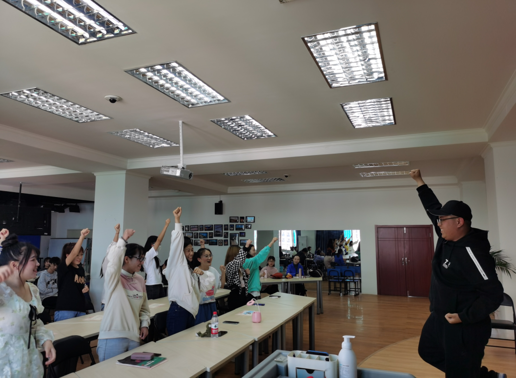 看看,这位憨态可掬的小伙子是谁?“If you are happy and you know it, clap your hands...”来自2101班的钟氏沿同学充满活力的动作设计和雄浑的歌喉让他的表演富有感染力,模拟教唱对象的同学们仿佛真正回到了孩童时代,整个现场洋溢着真挚的欢声笑语。钟氏沿同学最终获得了一等奖的好成绩。