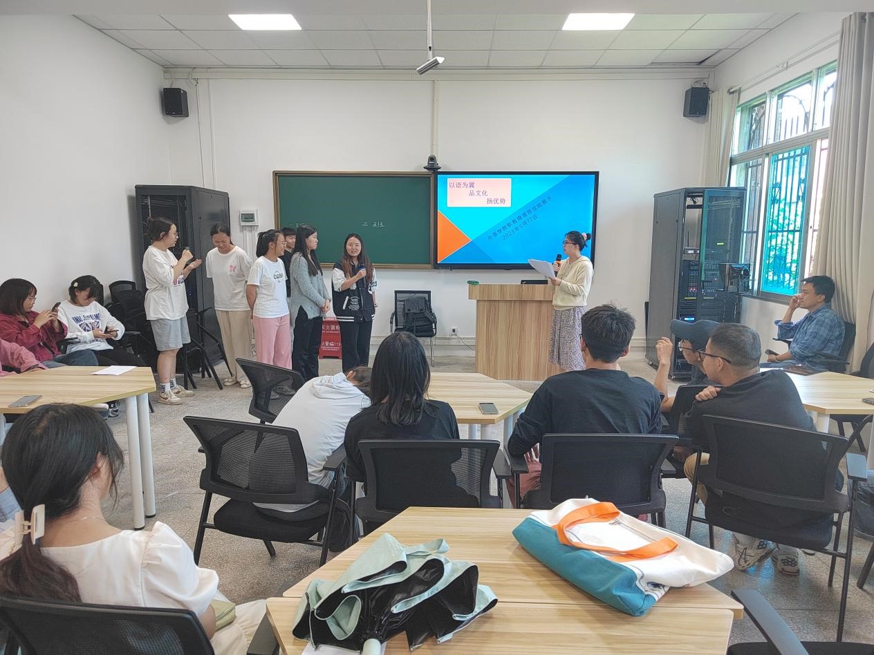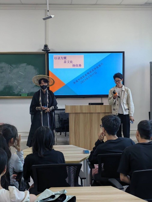 二、在短剧趣配音环节,三个专业的同学们用自己的声音重现一个个惟妙惟肖的角色,赋予这些角色新的生命,让听者身临其境。活动间隙,各班穿插表演外文歌曲,过程中同学们积极参与,气氛活跃,互动效果良好,为大家带来一场外语视听盛宴。