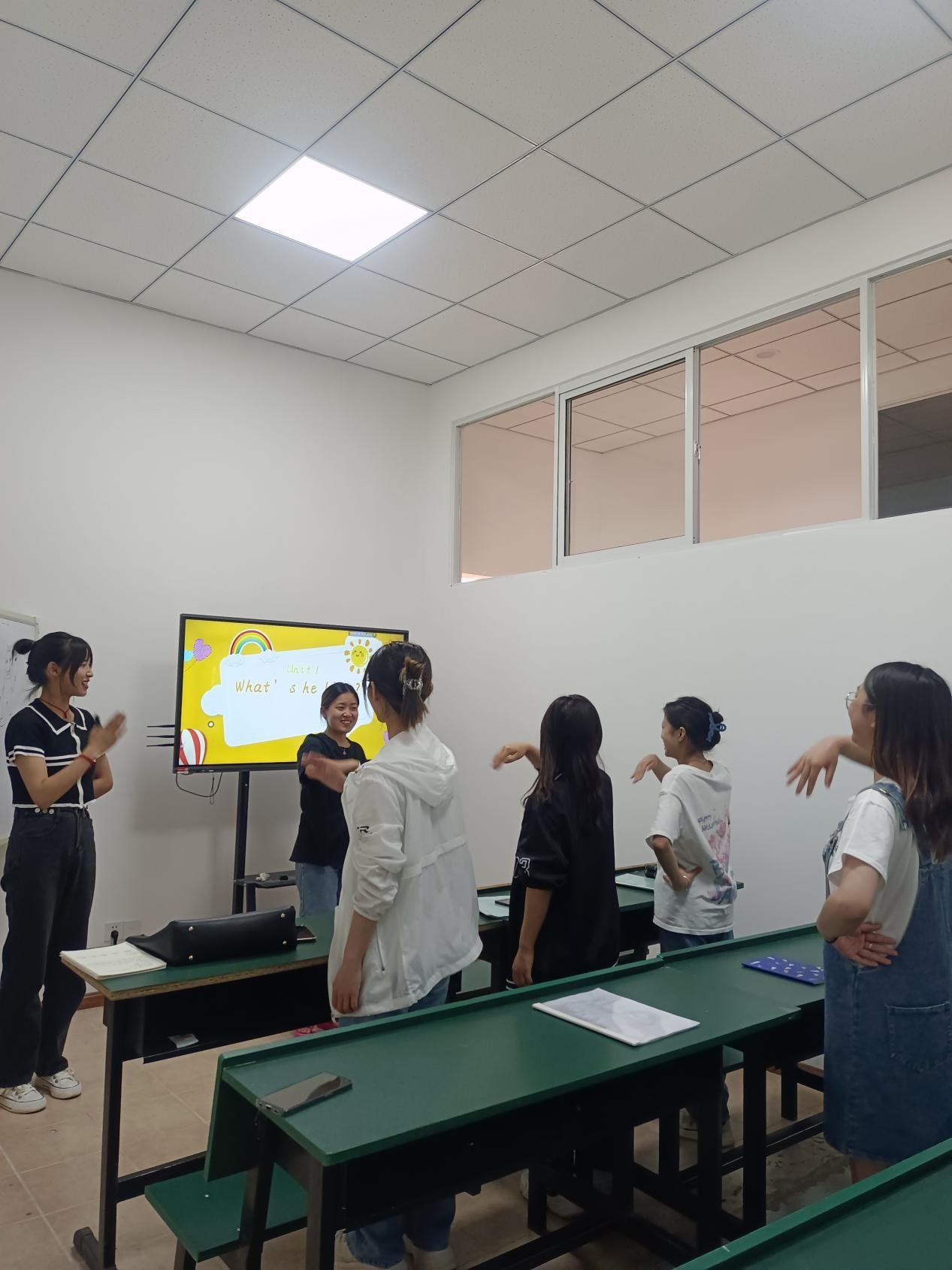 在龙头街实训基地,小学英语教育专业的同学们开展了模拟课堂教学技能训练和展示,他们将课堂所学应用于实践,把自己当做真正的老师,站在讲台上的那一刻,他们充满自信,标准的发音、完整的教学环节、有趣的操练游戏、精美的板书设计、一堂精彩的小学英语课完美呈现,为今后走向教师岗位打下坚实基础。