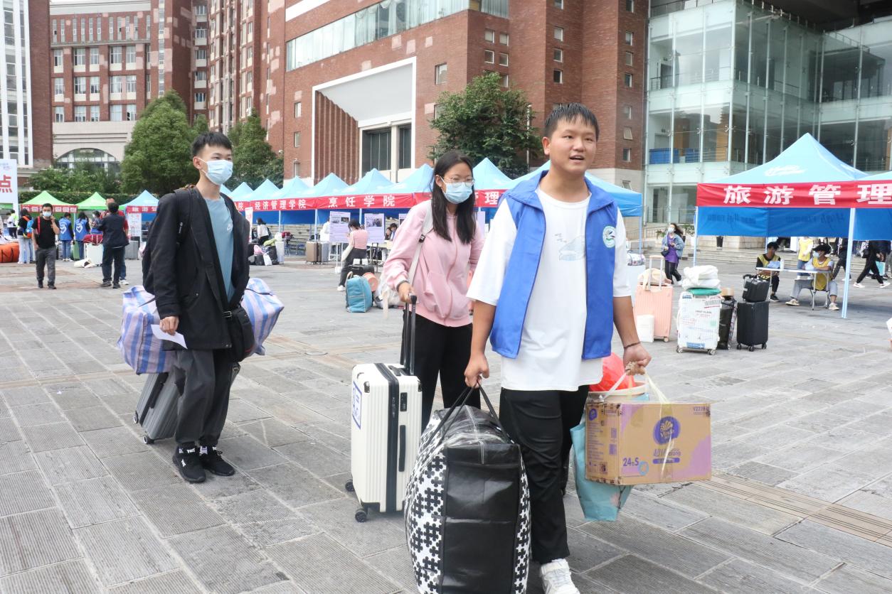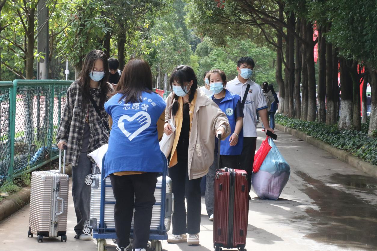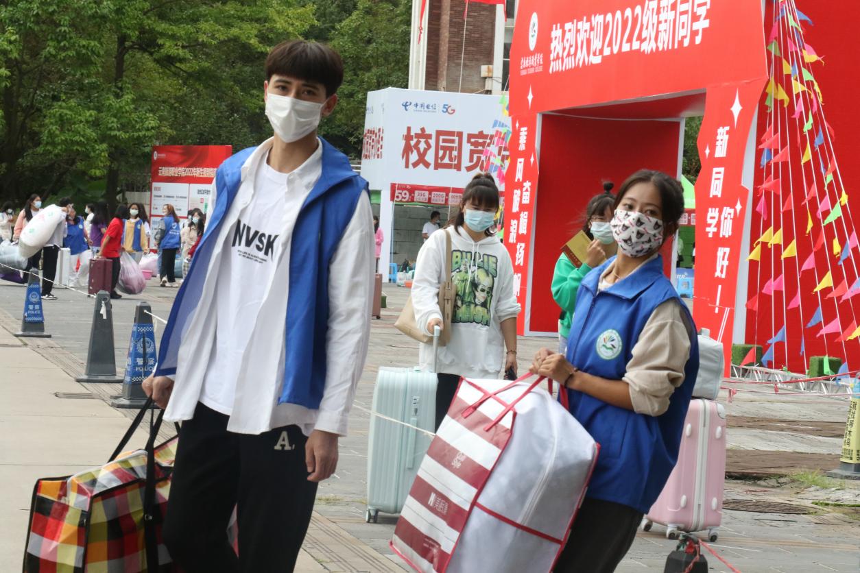 学长们热心的关心服务,给新生留下了深刻印象。2022级文化艺术学院“高速铁路客运服务”专业的舒雪琴同学说:“原本还担心带的行李太多拿不动,到了现场才发现自己的担心很多余,有志愿者帮忙搬运行李、现场引导,很快就办完了手续。”2022级大数据技术专业新生李毅说:“不论是笑脸相迎的学长,还是温柔周到的学姐,都让我感受到了旅院的温暖。”