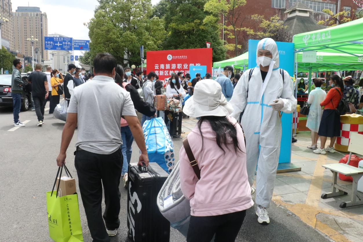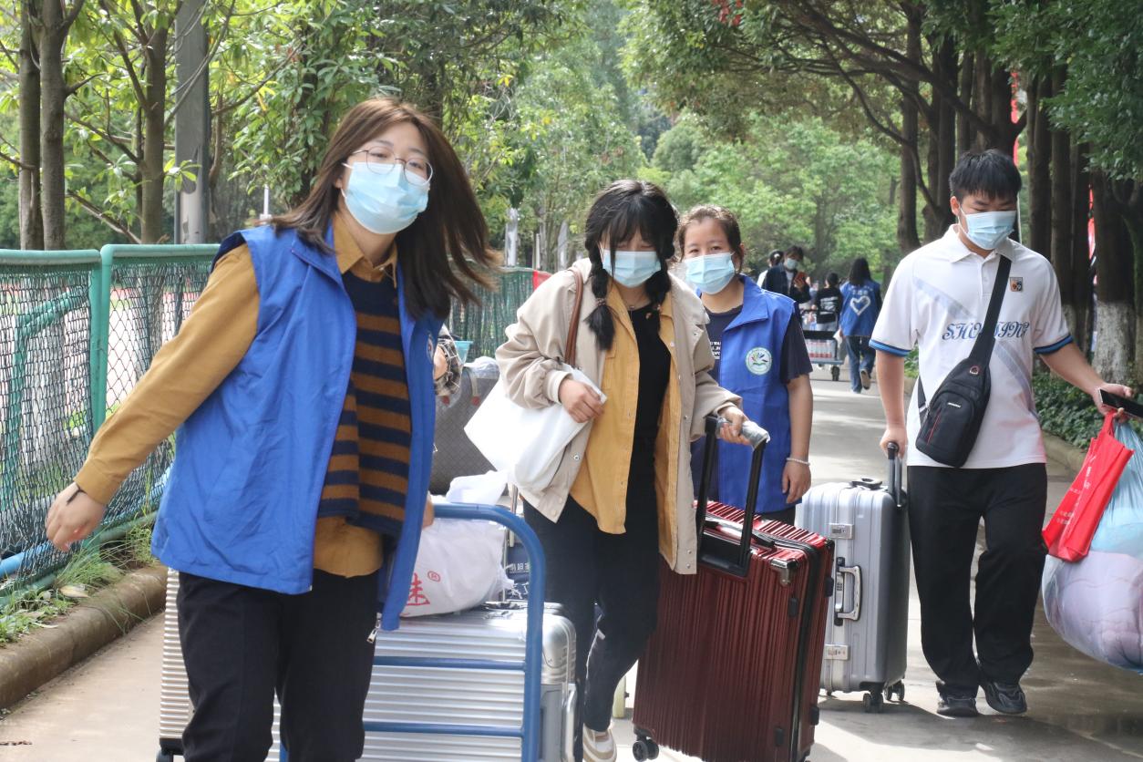 儿行千里母担忧,因疫情防控要求,送新生的车辆和亲友不能进校,校门外的家长们久久不愿离去,不舍之情溢于言表。但家长们表示,“把孩子交给学校,我们很放心”,家长们对学校安排好新生的学习生活,营造良好学习氛围感到很满意。