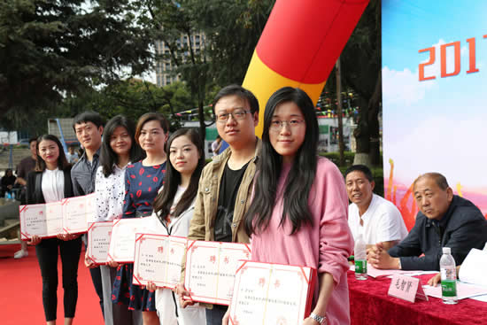 学院党委书记、院长张京龙为2017级新生班主任代表颁发聘书。