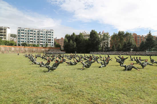 本次军训为期14天,训练内容包括条令条例教育与训练、消防疏散演练、战术训练、综合训练等。在军训闭幕式上,全体新生进行了阅兵分列式、太极拳、军体拳、擒拿格斗、防爆等各项军事技能表演。干净利落的动作和响彻云天的口号声,彰显了新生们的勃勃朝气。军训汇报表演结束后,学院领导为军训优秀学员和军训优秀指导员颁发了荣誉证书。
