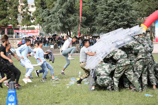 太极拳、军体拳、擒拿格斗、防爆等各项军事技能表演精彩绝伦,博得现场师生喝彩不断。