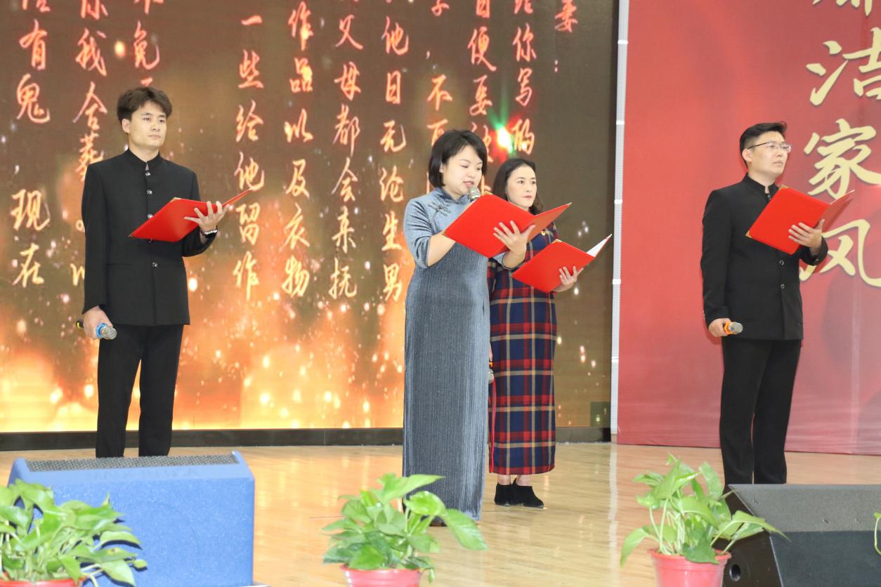 为深入学习贯彻习近平总书记关于党风廉政建设和家庭家教家风建设的重要论述精神,教育引导广大教职员工从红色经典中继承和庚续革命前辈的好家风、好作风,传承中华民族传统美德,以良好家风助推“五清旅院”建设。10月12日下午,学校党委宣传部、工会、共青团、关工委联合举办“诵红色经典 树廉洁家风”教职工朗诵比赛,13个工会小组,60余位参赛教职员工,以主题朗诵共同喜迎党的二十大胜利召开,创新推动趣味盎然、气氛浓烈、师生共同参与的教职工政治理论学习形式。