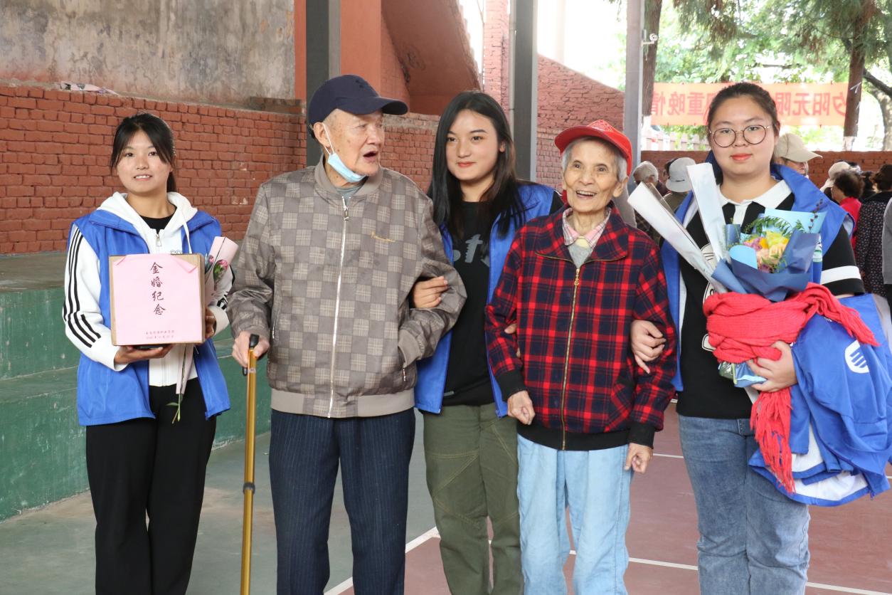 风雨同舟五十载,相濡以沫爱如歌。50年间老人们在风雨中的相扶相携,挫折中的相知相伴,为大家树立初心榜样,成为一道亮丽的风景线,金婚老同志对事业持之以恒,对婚姻忠贞不渝的精神值得年轻一辈学习和弘扬。根据活动安排,在志愿者的引领下,校领导为50年金婚的8个家庭代表赠送纪念品和鲜花,引导学校广大青年树立正确的婚恋观、家庭观,传承好家风、守护好家庭,弘扬“尊老、敬老”的传统美德,营造和谐社会文化氛围。老人的脸上洋溢着幸福的笑容,温馨感人的气氛也感染了现场的观众,大家纷纷用热情的掌声为台上的老人送上最真挚的祝福。