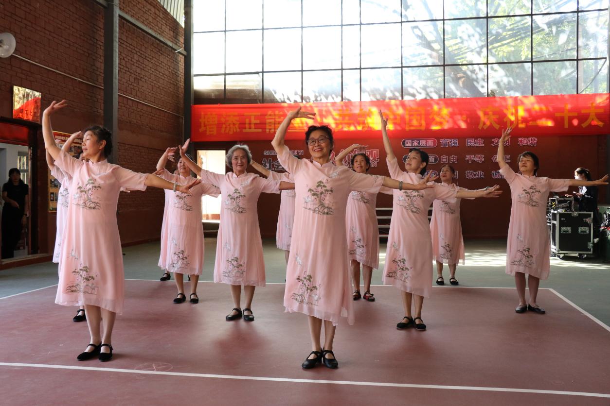 文艺演出在火红热烈的舞蹈《美丽的少女》中拉开序幕。现场志愿者们以优美的舞姿、灿烂的笑脸,讴歌壮丽的中国特色社会主义事业。老体协拳剑队的《八段锦太极健身操》、舞蹈《梅花赋》、独唱《多情的土地》、歌舞互动《我们的生活充满阳光》、朗诵《诗颂风华》、合唱队歌曲《瑶山夜歌》和《爱做梦的高原》等老人们喜闻乐见的精彩节目,轮番展演,充分展现老同志积极向上的精神面貌,抒发了老同志对党忠诚、对祖国和人民的热爱之情。