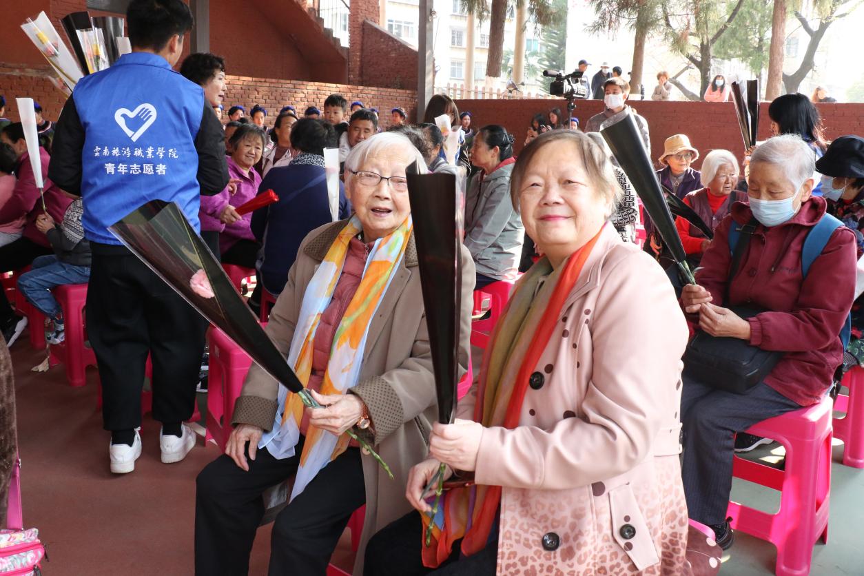 本次文艺汇演在大学生艺术团《一个都不能少》的优美舞蹈中拉开帷幕。花伞秀舞蹈《雨巷佳人》展示了老年人恬静柔和的舞姿,家庭秀《母女情深》让大家眼前一亮,三代人同台走秀,传播敬老爱老新风尚,获得观众一致好评。现场不论是轻松活泼的柔力球表演《匆匆时光》,功底扎实的民族舞蹈《红枣树》,还是淡定自如的锅庄独舞《歌舞人生》、自信满满的扇子秀《胖妞组合》,都让大家欣赏到了主旋律歌舞、藏舞、民族舞和运动时尚舞蹈等不同形式的精彩节目,学生志愿者们还为本次前来观看演出的老年人送上了粉粉的康乃馨,祝愿大家在往后的生活中能够继续充满热爱、保有魅力,用真情给生活以最大的尊敬。