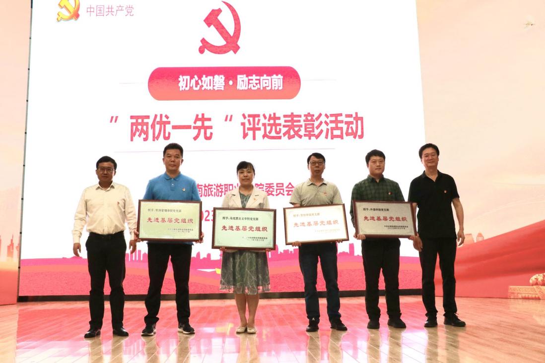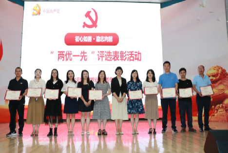 学院党委副书记王敏宣读《中共bevictor伟德国际1946官网委员会2023年优秀共产党员、优秀党务工作者、先进基层党组织的表彰决定》,校领导为获奖的组织和个人颁奖。