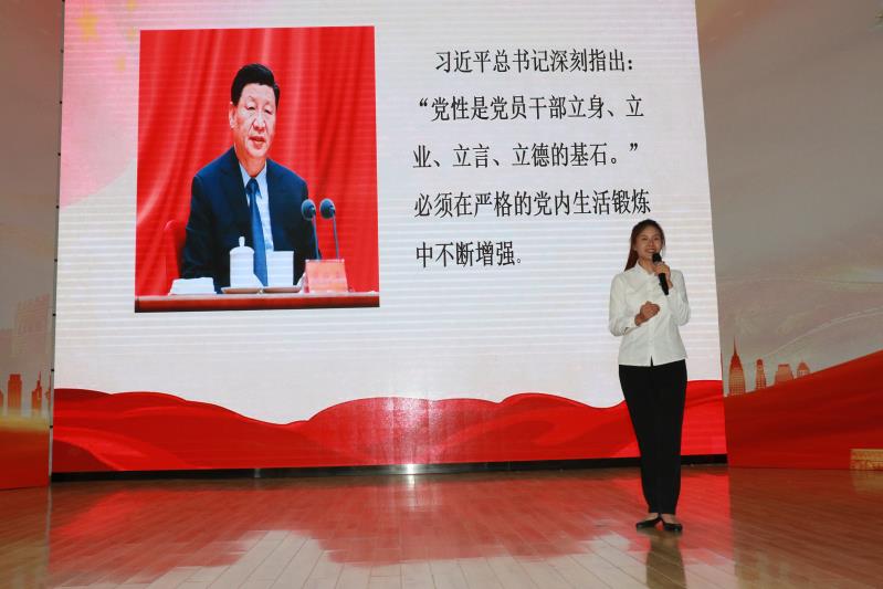 学生党员宣讲团成员矣金莉同学进行“用生命燃灯,彰显党性修养”微党课宣讲,深情诉说全国优秀共产党员、“七一勋章”获得者,华坪女子高级中学校长张桂梅同志一生立德立言、无私奉献、用教育点亮贫困山区女孩梦想的光辉事迹。